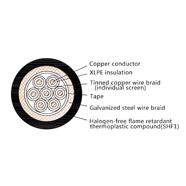 The CKJP96/SC marine control cable combines XLPE insulation with low smoke halogen free (LSHF) properties and comprehensive electromagnetic screening. Designed for critical applications where flame retardancy and environmental safety are paramount.