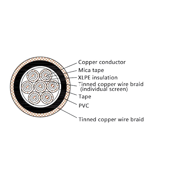 CKJVP80/NA marine control cable offers superior fire-resistant performance with an innovative exposed copper armor design. Featuring mica-reinforced XLPE insulation, electromagnetic screening, and tinned copper wire armor without outer sheath, this cable provides optimal protection and flexibility for critical marine control systems.