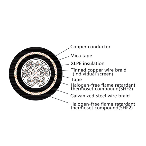 CKJPJP95/NC represents the highest grade of marine control cable, integrating comprehensive fire protection with robust mechanical durability. Featuring dual-layer LSZH thermoset sheathing, galvanized steel wire armor, mica-reinforced XLPE insulation, and advanced electromagnetic screening for maximum reliability in critical marine applications.