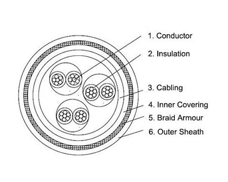 Braid Armour: Tinned copper wire braid per IEC 60092-350