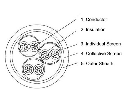 Overall screening with copper-backed polyester tape and tinned copper drain wire