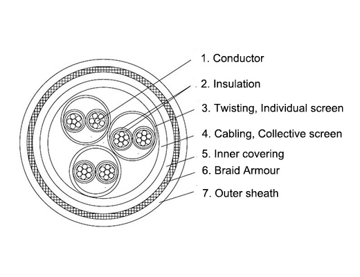 Braid Armour: Tinned copper wire braid manufactured per IEC 60092-350