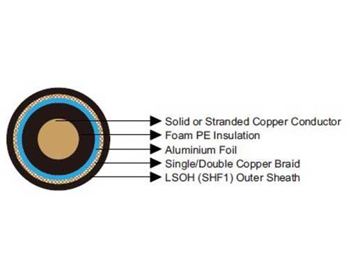 Conductors: Solid or stranded TC (Tinned copper), BC (Bare copper), BCW (Bare copperweld), SC (Silvered copper), SPCCS (Silver plated copper on steel)