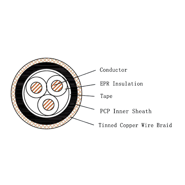CEF80/SA marine power cable features EPR insulation and copper wire braided armor, designed for reliable power transmission in demanding marine and offshore environments. The cable meets stringent international marine standards for safety and performance.