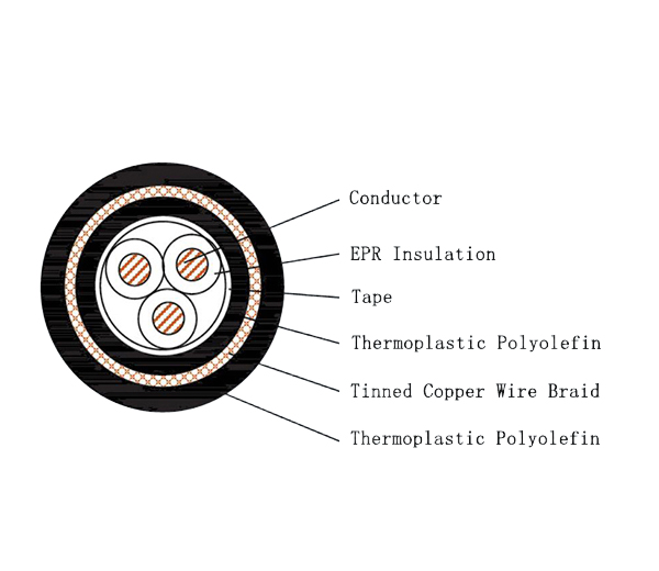 CEPF86/SC marine power cable features EPR insulation with double-layer low-smoke halogen-free (LSZH) SHF1 sheathing and copper wire braided armor, providing maximum safety and environmental protection for demanding marine and offshore applications.