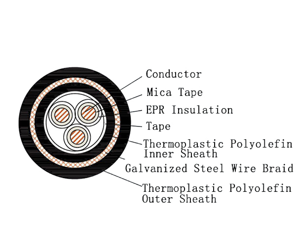 The CEPF96/NC EPR Insulated Armored Marine Power Cable represents the pinnacle of integrated safety cable design for critical fixed installations. This fully-sheathed cable delivers unmatched protection by combining fire resistance (IEC 60331), low-smoke zero-halogen (LSZH) properties, and heavy-duty galvanized steel wire braid armor, all encased within dual SHF1 polyolefin sheaths. It is engineered to ensure circuit integrity during fire, provide a safer escape environment, and offer maximum resistance to mechanical damage and harsh conditions.