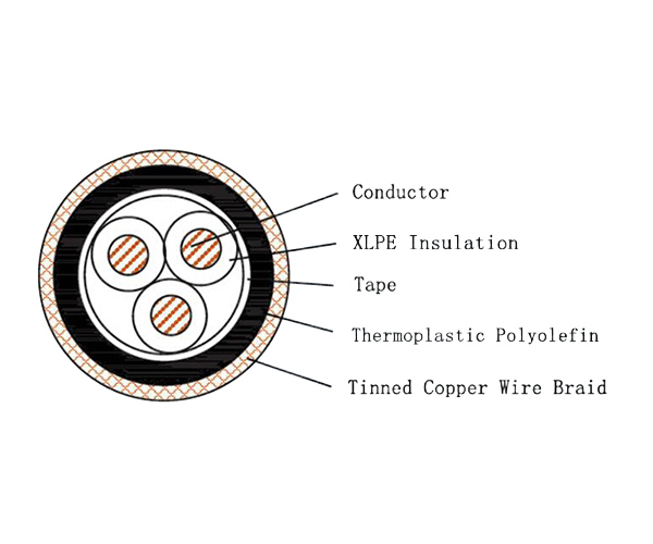 The CJPF80/SC XLPE Insulated Armored Marine Power Cable is a high-performance cable designed for safety-conscious power and control circuits. It features XLPE (Cross-linked Polyethylene) insulation for excellent electrical and thermal properties, combined with an inner sheath of low-smoke, zero-halogen (LSZH) thermoplastic polyolefin (SHF1) and a tinned copper wire braid armor. This construction provides reliable flame retardancy (IEC 60332), minimizes hazardous emissions in case of fire, and offers flexible mechanical protection.