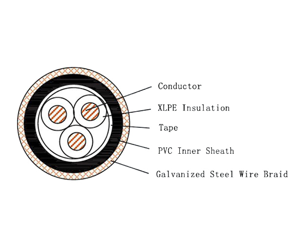 Galvanized Steel Wire Armor: Offers superior mechanical protection against crushing, impact, and rodent damage.