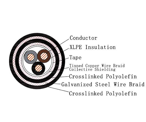 Ultimate Mechanical & Environmental Protection: Features a high-strength galvanized steel wire braid armor for maximum crush and impact resistance, combined with a double-layer SHF2 cross-linked sheath that offers exceptional thermal stability and resistance to deformation, chemicals, and abrasion.