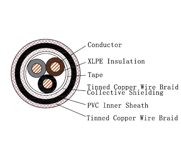 The CJVP80/SA is a reliable and cost-effective marine power cable designed for general-purpose applications where robust EMI protection, flexibility, and essential flame retardancy are required. It features durable XLPE insulation paired with a standard PVC inner sheath, providing a balance of performance and value. Its defining characteristic is the flexible, braided armor made of tinned copper wires, which offers excellent corrosion resistance, ease of handling, and reliable earth continuity. This shielded cable is an ideal solution for fixed installations in various marine and industrial environments where standard flame-retardant properties are sufficient.