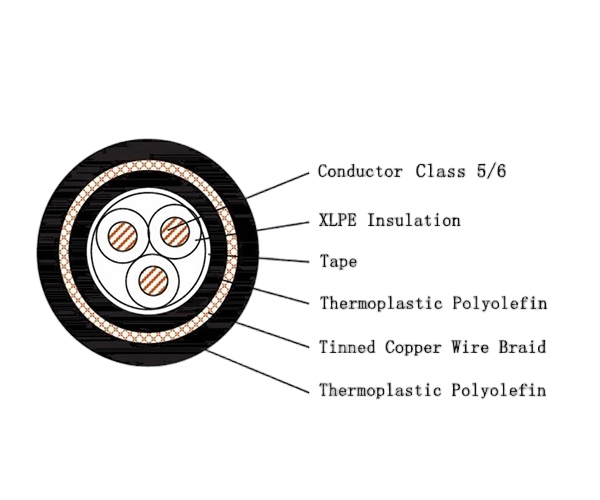 The CJPFR86/SC is a halogen-free, low-smoke, flame-retardant marine flexible power cable engineered for high-flexibility applications in demanding environments. It features fine-stranded conductors, XLPE insulation, a tinned copper wire braid armor, and an additional outer protective sheath. This dual-sheathed construction provides superior mechanical protection and flexibility, making it ideal for dynamic or complex routing in control systems and power circuits on vessels and offshore installations.