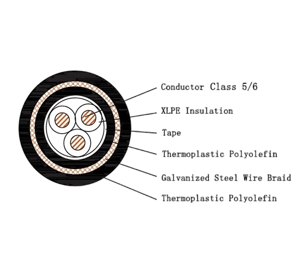 The CJPFR96/SC represents a high-performance, halogen-free, and flame-retardant marine flexible power cable engineered for demanding applications requiring maximum mechanical protection alongside excellent flexibility. It features fine-stranded Class 5/6 conductors, XLPE insulation, galvanized steel wire armor, and a complete dual-sheath system. This robust construction ensures superior resistance to impact, abrasion, and environmental factors, making it the ideal choice for exposed, high-traffic, or harsh routing paths on vessels and offshore installations.