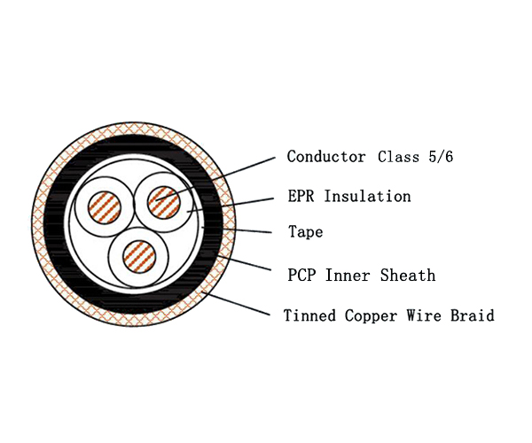 Durable PCP Inner Sheath: The Polychloroprene (PCP, Neoprene) inner sheath provides good resistance to oils, ozone, weathering, and abrasion, offering enhanced environmental protection for the cable core.