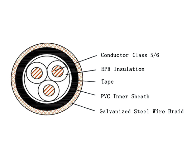 The CEVR90/SA is a heavy-duty marine flexible power cable engineered for applications that demand superior electrical performance alongside maximum mechanical protection. It combines durable Ethylene Propylene Rubber (EPR) insulation, a PVC inner sheath, and galvanized steel wire braid armor. This robust construction is designed to withstand severe physical stress while providing reliable power transmission for critical circuits in the most demanding marine and industrial environments.