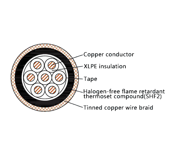The CKJPJ80/SC is a premium Low Smoke Halogen Free (LSHF) and Flame Retardant marine control cable designed for critical power, lighting, and control systems. It features XLPE insulation, a high-performance Cross-linked Polyolefin (SHF2) inner sheath, and a flexible tinned copper wire braid armor. With no outer oversheath, this streamlined design offers enhanced fire safety, flexible mechanical and EMI protection, and is grounding-ready for panel and tray installations. It is fully compliant with IEC 60092, IEC 60754 (Halogen Free), and IEC 61034 (Low Smoke) standards.