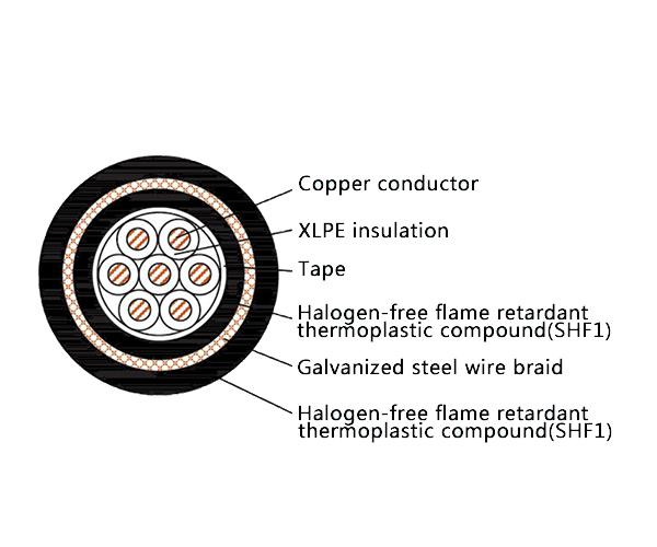 Maximum Mechanical & Environmental Protection: The galvanized steel wire braid armor provides superior resistance to crushing, impact, abrasion, and rodent damage. The dual-layer SHF1 sheath offers excellent overall toughness, moisture resistance, and protection against oils and chemicals.