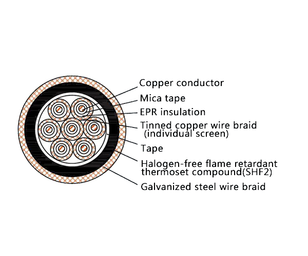 Grounding-Ready & Durable: The single SHF2 sheath offers excellent environmental protection. With no outer oversheath, the armor is accessible for direct and reliable grounding to structural hulls or panels, while the SHF2 material provides superior thermal and chemical resistance.