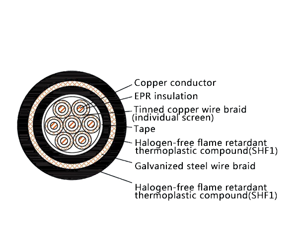 The CKEPFP96/SC is a premium-grade, screened and armored marine control cable designed for reliable power, lighting, and control circuit applications in the most demanding environments. Featuring EPR insulation, individual pair/screen shielding, galvanized steel wire armor, and a Halogen-Free, Low Smoke Flame Retardant (LSHF) construction, it ensures maximum signal integrity, mechanical protection, and safety on offshore platforms, ships, and in heavy industries. This cable is manufactured in full compliance with the IEC 60092 series of standards for marine electrical installations.