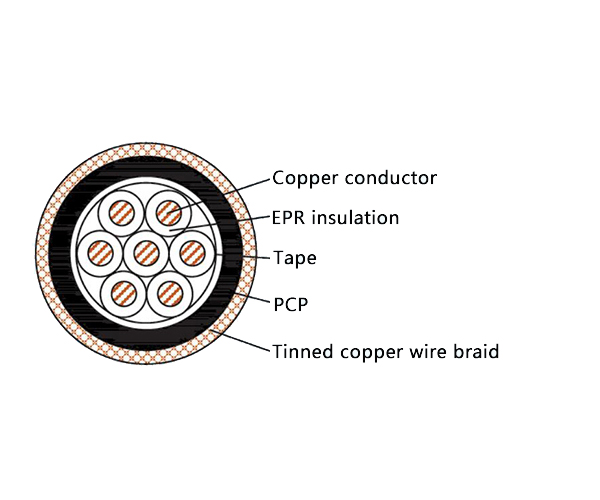 The CKEF80/SA is a specialized flame-retardant marine control cable engineered for applications demanding superior flexibility, electromagnetic shielding, and installation adaptability. Featuring EPR insulation, an oil-resistant PCP inner sheath, and a flexible tinned copper wire braid armor, this cable is supplied without an outer sheath (Code 0). This SA-grade configuration provides a robust and versatile core, ideal for system integrators and panel builders who require a cable that can be fitted into custom conduits or have a specific final over-jacket applied on-site, ensuring compliance with IEC 60092 standards for critical marine and industrial control systems.