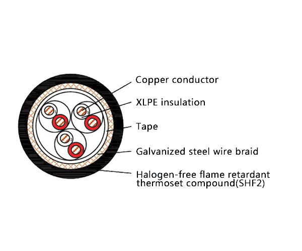 The CHJ95/SC is a high-performance Low Smoke Halogen Free (LSHF) Flame Retardant marine communication cable engineered for critical telecommunication, instrumentation, and data systems. Featuring XLPE (Cross-linked Polyethylene) insulation, heavy-duty galvanized steel wire armor, and a superior cross-linked polyolefin (SHF2) outer sheath, this cable delivers enhanced fire safety, exceptional mechanical protection, and long-term environmental durability. It is designed for reliable operation in demanding marine, offshore, and industrial environments, fully complying with IEC 60092 standards.