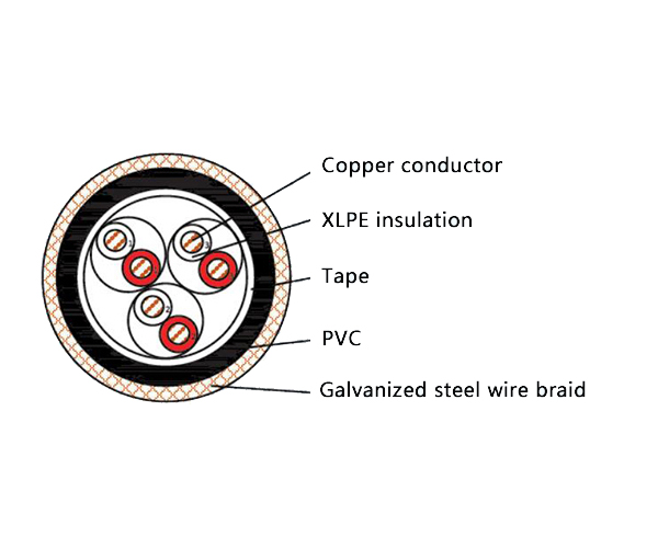 Mechanical Protection: The Galvanized Steel Wire Braid Armor (Code 9) offers high resistance to impact, crushing, and mechanical stress, safeguarding the cable core in demanding applications.
