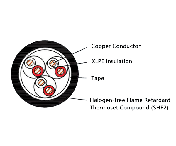 Durable & Reliable Construction: XLPE insulation ensures excellent dielectric strength, thermal stability (rated for 90°C), and resistance to aging. The Cross-Linked Polyolefin (SHF2) outer sheath provides robust mechanical and environmental protection without halogens.