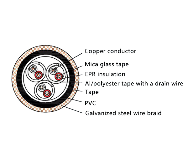 Superior Fire Survival: Constructed with mica glass tape and EPR insulation, the cable is certified to IEC 60331 standards, ensuring continued operation of essential systems in the event of a fire.