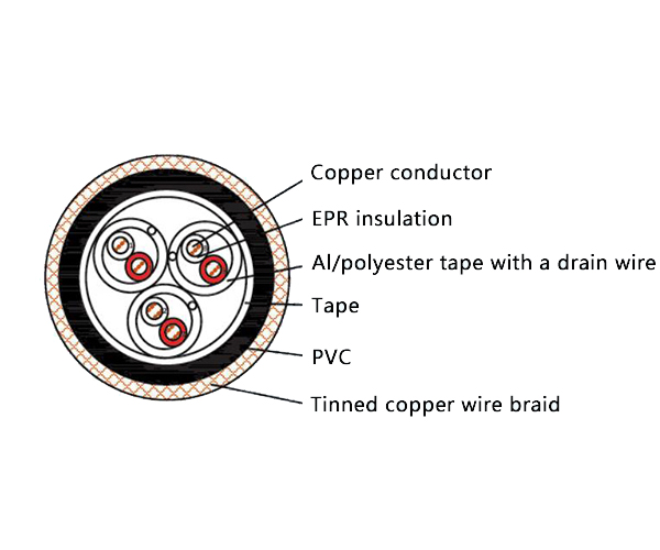 Effective Grounding & Durability: The continuous copper braid armor serves as a highly effective shield and provides a reliable, low-resistance ground path. EPR insulation ensures stable performance at temperatures up to 90°C.