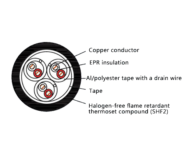 Durable & Resilient Sheath: The Cross-linked Polyolefin (SHF2) sheath offers excellent mechanical toughness, chemical resistance, and environmental durability, while maintaining the LSHF properties.