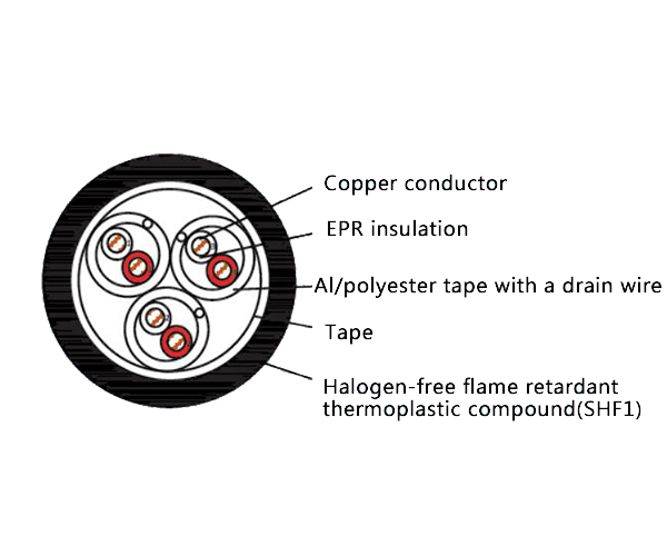Cost-Effective LSHF Solution: Utilizes a Thermoplastic Polyolefin (SHF1) sheath that meets stringent LSHF requirements, offering a durable, environmentally resistant, and economical cable solution for general marine and industrial use.