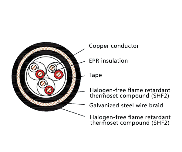 Long-Term Reliability: EPR insulation ensures stable electrical performance at temperatures up to 90°C, supported by the superior environmental resistance of the SHF2 sheath system.
