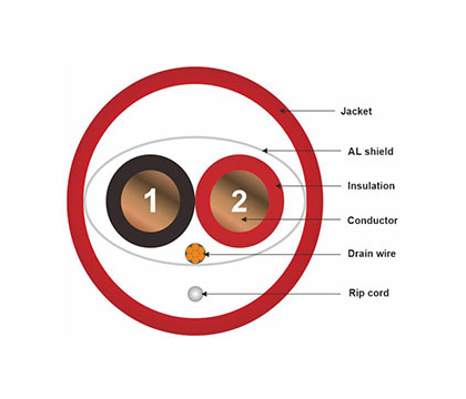 Shield: Aluminum Polyester Foil with 22 AWG Stranded Tinned Copper Drain Wire.