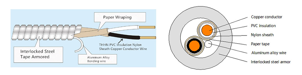 Integrated Grounding: Utilizes a combination of the armor itself and a 16 AWG aluminum bonding wire, supplemented by a separate copper equipment grounding conductor, for a reliable grounding path.