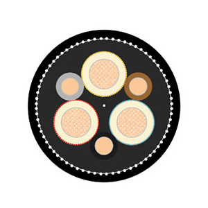 | Core Assembly | Three tinned copper braided screened power cores and three unscreened pilot cores (one in each interstice), laid up with right-hand lay around a semi-conductive cradle centre. (Only 16 mm²: around rubber (RD1) filler centre). |