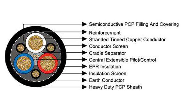 | Central Extensible Pilots (3×) | EPR insulated flexible stranded tinned copper conductors (for earth continuity monitoring and control circuits). |